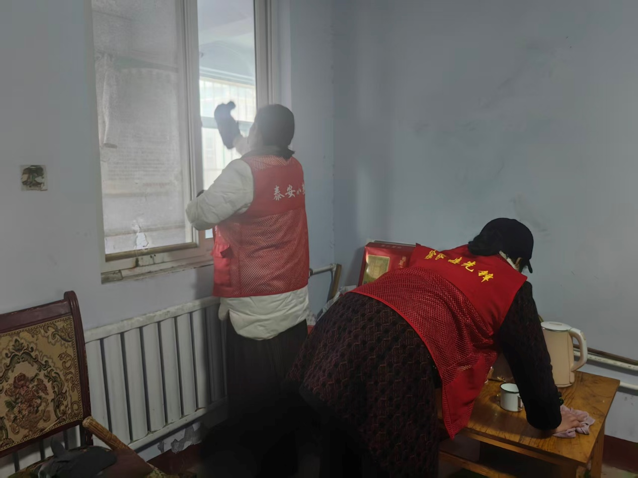 泰山区徐家楼街道白峪店子村妇联为老年公寓“焕新”送暖