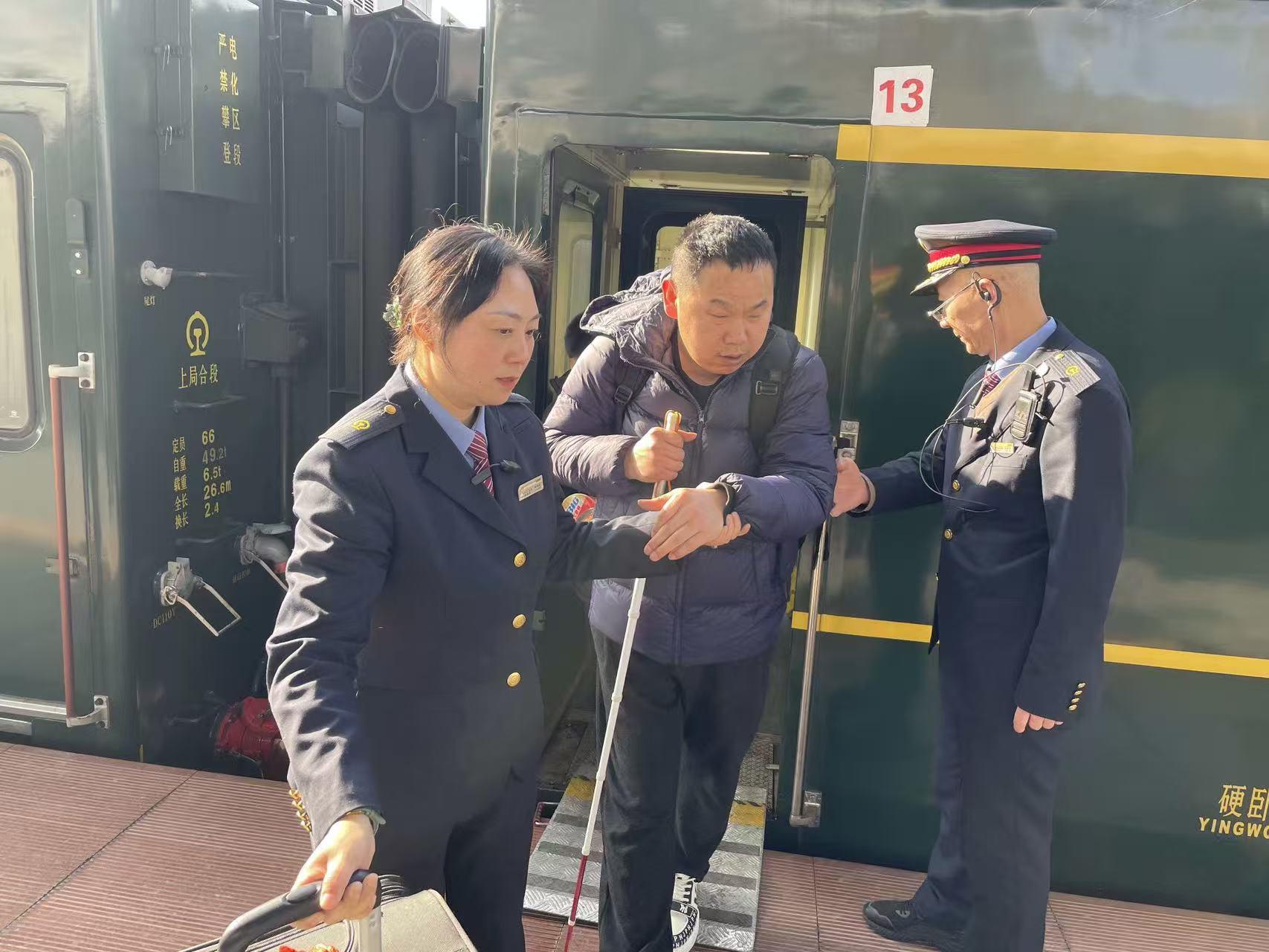 老人颤巍巍地拿起手机给儿子报平安,声音哽咽:“放心吧,车上的工作人员给我换了下铺,遇到好人了,心里真暖……”