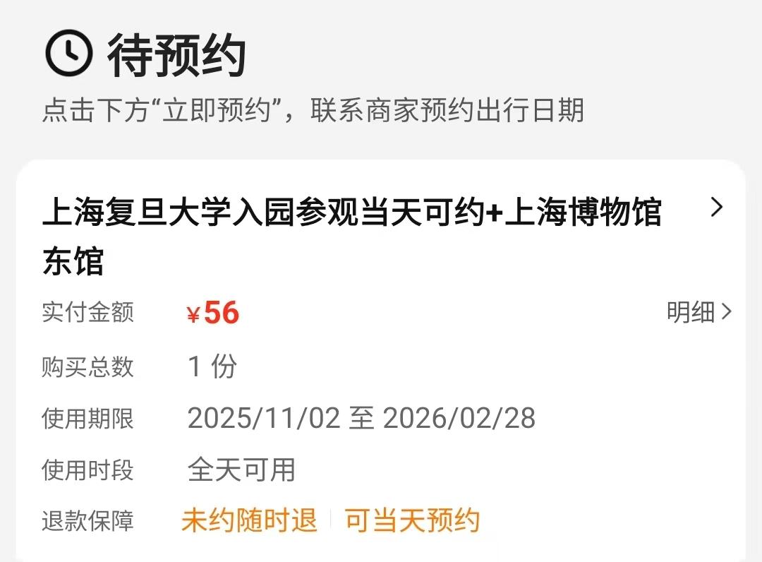 大皖新闻讯 春节假期刚结束,有游客反映,本可免费预约参观的复旦大学(邯郸校区)在某平台上被商家包装成数十元至百余元不等的“旅游套餐”出售,并遭遇退款难。