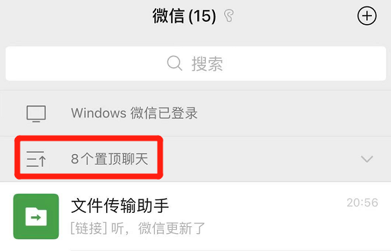 3、置顶聊天折叠这个功能之前苹果版已经上线。当你置顶的信息比较多的时候,就会自动折叠,以免占用日常聊天窗口,当置顶好友有新消息的时候,会重新出现在第一屏。不过只有在置顶聊天框超过10个时,用户才能折叠聊天框,此外,如果微信群被设置为免打扰,就不会再被折叠。