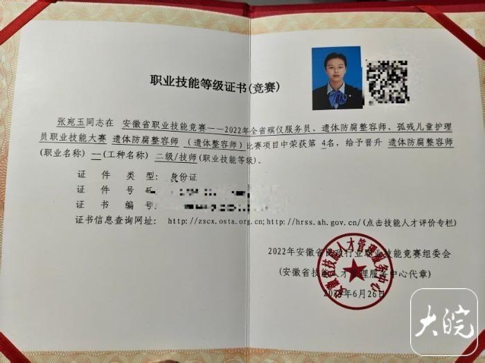 “入殓师”是大众对张宛玉职业的通俗称呼,而在她的职业技能等级证书上,正式名称是“遗体防腐整容师”。