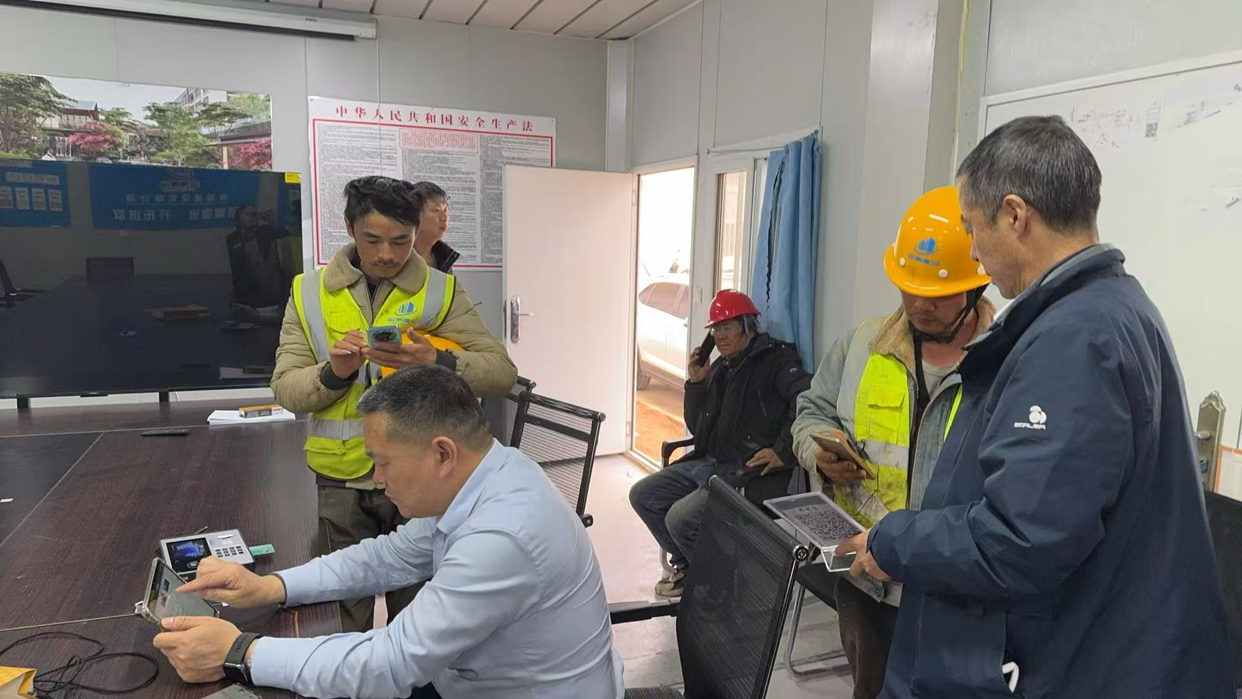 服务现场,工作人员提前调试好移动开卡设备,在工地现场搭起了一个小小的“临时金融服务站”。三人分工明确、配合默契,耐心又细致地为每一位工友服务。考虑到大家平时工期紧、任务重,没有时间专程前往网点办理业务,工作人员现场集中为大家办理银行卡开立、激活,手把手指导开通手机银行、个人养老金账户,一步一步教大家查询余额、转账缴费、查看工资到账,让大家足不出工地,就能享受到方便又省心的金融服务。