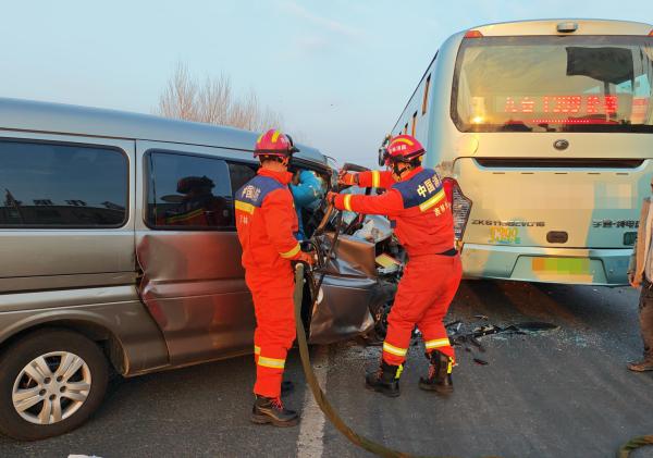面包车追尾致4人被困 长春消防火速救援化险为夷