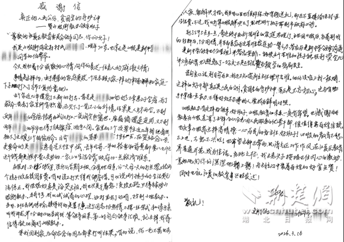 荆楚网(湖北日报网)讯(记者林杉 通讯员罗耀兵)“到目前为止,我还不知道这位主任姓甚名谁。这样的好干部,真正是人民的公仆。”3月16日,江夏区教育局收到一封言辞恳切的感谢信。写信人是一位70岁的老人程爷爷。信中,他反复提及“感动”与“感谢”,讲述了自己为侄孙求助的经历。一次尝试性的问询,竟在短短几天内,为一个少年的求学路打通了关卡。