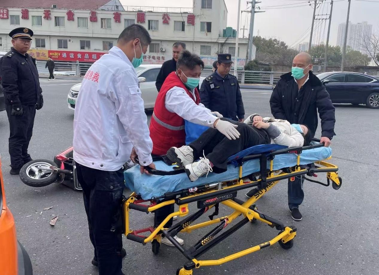 据了解,中队队员行至通沙路路段时,发现一辆电动自行车与机动车发生碰撞,电动自行车驾驶人倒地受伤,现场散落着车辆碎片,情况较为紧急。队员们第一时间在事故现场设置警示区域,疏导过往车辆与行人,避免发生二次事故。队员们主动上前查看伤者伤情,安抚伤者情绪,同时第一时间拨打120急救电话,为专业医疗救援争取时间。
