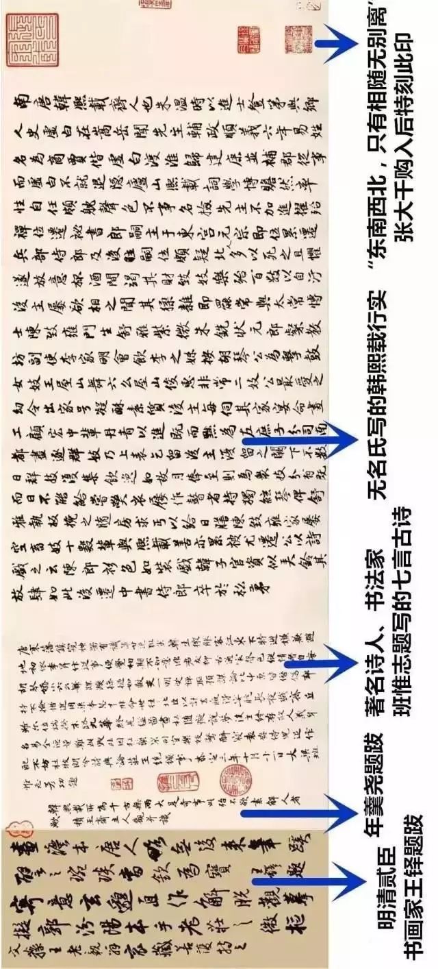 清朝时,这幅画被名将年羹尧所得,还特意题了跋。被抄家后,夜宴图流进了皇宫,成了乾隆爷的掌上宝,并在上面题字盖章。之后,清王朝土崩瓦解,夜宴图也再次流入民间。