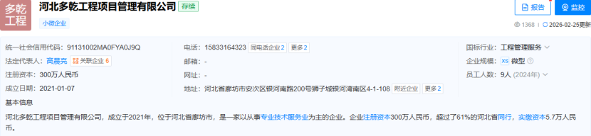 河北多乾工程项目管理有限公司(采购代理机构)成立于2021年位于河北省廊坊市安次区,注册资本为300万人民币,该公司参与招投标项目79次。