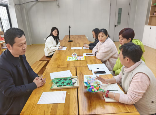 教研活动的第二环节,是一场别开生面的“微型作品展”。美工组的老师们纷纷亮出自己的“绝活”——栩栩如生的剪纸、精美别致的手工花、充满意境的装饰画……一件件作品不仅展示了老师们扎实的专业功底,更体现了大家对美的理解与追求。“只有老师自己会创作、懂欣赏,才能更好地引导学生去感受美、表现美。”在作品交流中,老师们互相启发,教学灵感不断迸发。每位老师都结合自己班级的实际情况,详细分析了本班学生的能力水平、兴趣特点及个别化需求。有的班级学生精细动作较好,可以尝试更复杂的手工;有的班级学生对色彩敏感,应加强绘画创作的引导;还有个别学生需要特别的辅助与支持……
