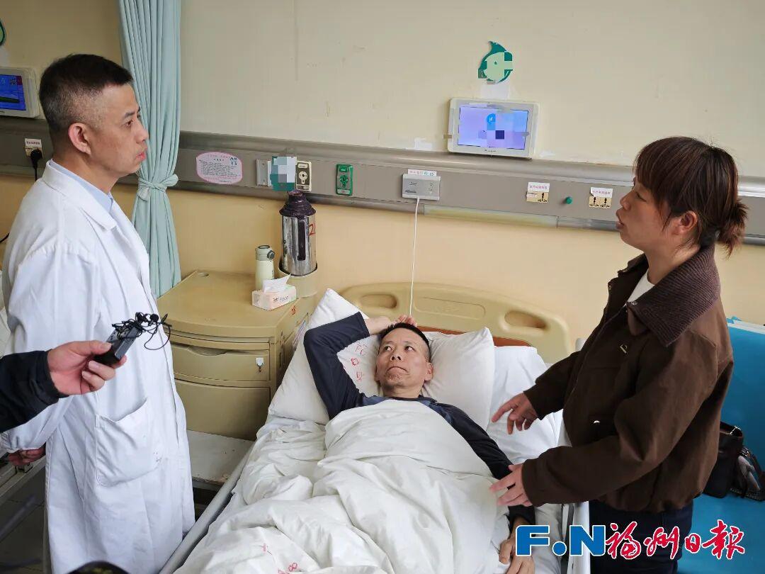 3月26日,福州大学附属省立医院泌尿外科病房里,“煎饼叔叔”张建武和妻子龚宝玉笑着回答医生的问询。