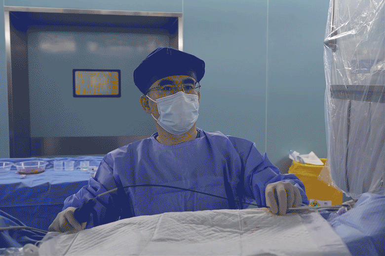 术中,高婷雯主任根据术前CT重建、术中腔内超声及左心耳造影的精准引导,避开血栓位置,精细操作将封堵器植入左心耳,在确保血栓不脱落的前提下实现完美封堵,复查造影无残余漏。随后,解新星副院长接力完成房颤射频消融,一次手术实现预防血栓与恢复窦性心律的双重获益。整个手术仅通过股静脉穿刺完成,创伤微小、出血极少,过程顺利高效。