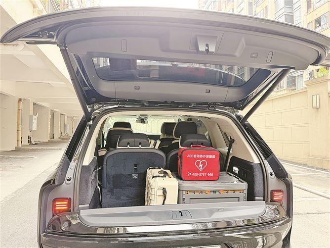 车主将AED放在汽车后备厢。