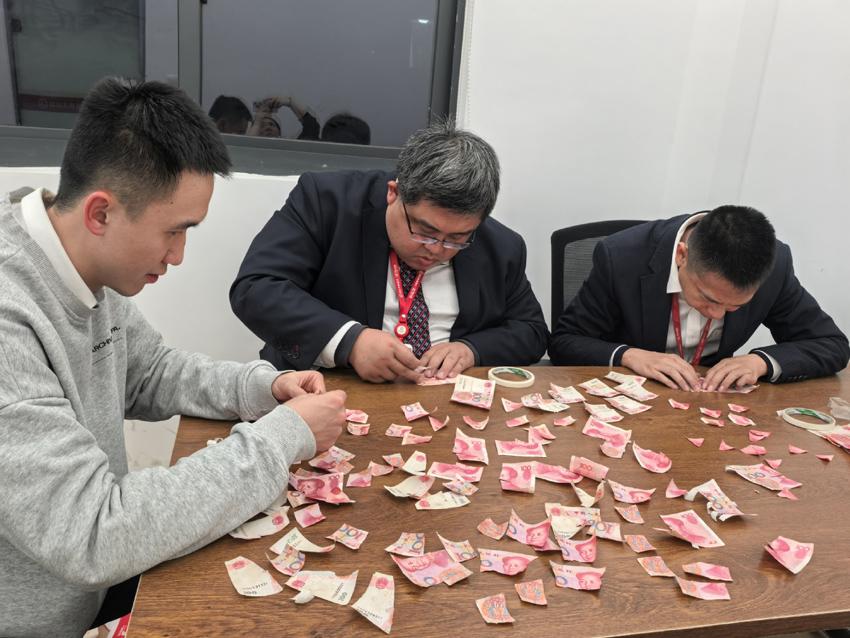 经过从傍晚到深夜连续数小时的努力,所有破碎的纸币终于在当晚11时许被成功拼接完整。随后,支行工作人员迅速将拼接好的残损币送至现金中心进行鉴定。经鉴定,总计2500元的残损币符合全额兑换标准。