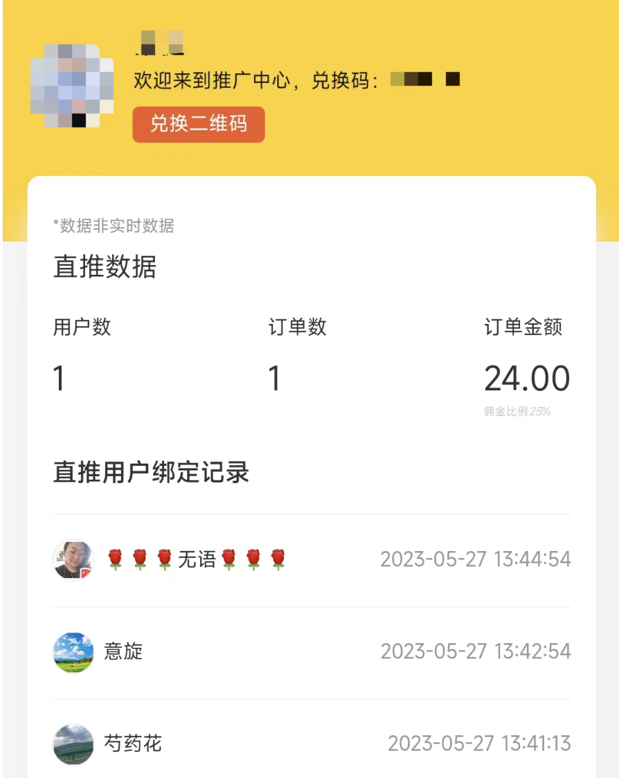 审核通过后即可开通推广的后台,获得属于自己的专属兑换码