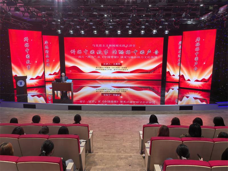 河北新闻网讯 4月9日,河北师范大学新闻传播学院演播厅内春潮涌动、掌声不断。以“讲好中国故事 传播好中国声音——践行‘四力’从《中国脊梁》谈采写精品 助力文化强国”为主题的“马克思主义新闻观实践大讲堂”在此举行。活动邀请中国优秀新闻工作者最高奖“长江韬奋奖”获得者、全国百佳新闻工作者、中国作家协会会员、原河北电台副台长王喜民担任主讲人,为新闻传播学院学子带来一场生动深刻的专业报告。