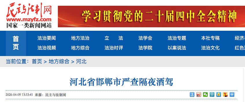 邯郸市严查隔夜酒驾:驾驶证一次性记12分、暂扣6个月,罚款1000元