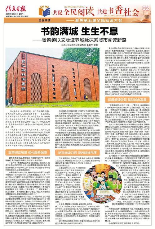 促进全民阅读,不仅在于场景焕新、体验升级,更要融入生活日常。景德镇坚持以文化人、以文润城,推动城市阅读与城市文化建设深度融合,形成全民参与、全城联动的阅读生态。