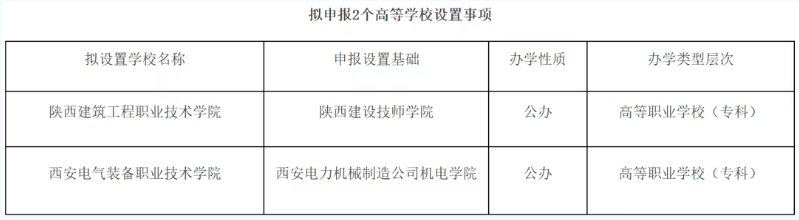 陕西拟新增2个高等学校:陕西建筑工程职业技术学院、西安电气装备职业技术学院